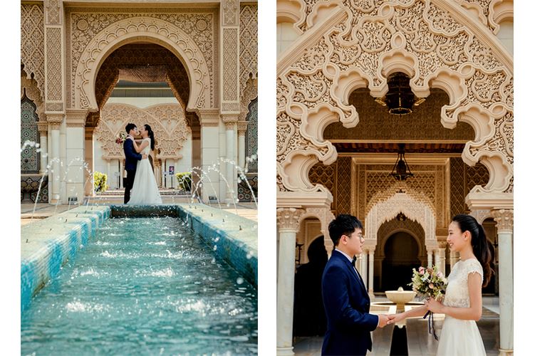 馬來西亞有三大民族,分別:馬來人、華人、印度人,多元文化一直以來都是吉隆坡的最大特色 多元種族加上殖民地,在吉隆坡可以看到許多不同風格的建築 走在路上可以看見英式風格的建築,拐個彎也可以看見華人廟,彎進小巷或許還可以看見印度廟宇 在吉隆坡的旅行,是一趟很有趣也充滿探險驚奇的行程。 蘇丹阿都沙末大樓(Sultan Abdul Samad Building)是吉隆坡舊城區最重要的地標,也是英殖民時期的行政中心。 整座大樓融合了摩爾式、英國式和印度回教的建築風格,讓吉隆坡這座城市充滿了異國風情。 當初規劃馬來西亞海外婚紗,就上網做了很多功課 也查了當地許多特色的建築,但因為宗教 (伊斯蘭教) 相對保守,所以在規劃與拍攝上,需要更加嚴謹 例如:不能當眾親吻 ! 在他們國家是不能被允許,但礙於我們是觀光客,似乎就比較能通融 但牽牽手,擁抱彼此是可以過關的 而在舊城區,到處都是很美的景象 (對於光觀客的我來說) 尤其是建築的變化,讓我手上的相機快門按不完 兩人手牽手散步在大城市裡,也是另一種旅行風景 當初拍攝,我們包了會華語的計程車司機,在拍攝過程真的順利很多 司機會幫我和當地人溝通,也解決語言上的問題,而且司機還會帶我們去吃在地美食和推薦路線 來到馬來西亞就一定要和地標【雙峰塔】合照,但因為雙峰塔是屬於私營企業的建築 所以太正大光明拍攝婚紗,或是沒有申請拍攝,是會被當地的保安或保全驅趕 在台灣時,就知道有這個情控,可是心想,都來到大馬,怎麼可以不拍這大地標呢 這時候司機大哥就派上用場拉,他帶我們去另一個方向,一樣可以拍攝到 但也比較不會被驅趕的方向!!! 雙子星塔也稱為國油雙峰塔 (Petronas Twin Towers) ,聳立在吉隆坡最繁華的心臟地帶,是遊客必訪的吉隆坡著名地標。雙子星塔目前是全世界最高的雙塔樓及世界第五高的大樓,高452公尺、共有88層樓、面積約40公頃。 果然找在地人就對了!!! 雙峰塔輕鬆入鏡,而且也可以拍得不用膽戰心驚 待在吉隆坡的那幾天,除了天氣非常炎熱外,就是午後雷陣雨 那雷陣雨不是普通的小雨滴,在台灣根本就像狂風暴雨! 突然的烏雲密布,然後就開始打雷閃電,下大雨~ 但兩個小時後真的是雨後天晴,天氣瞬間放晴,又恢復很熱的氣候 剛好下雨時,我們也找百貨休息,順便轉換場景 但因為馬來西亞的日落較晚,所以拍攝也不會受影響 再來這個地方,真的是我最喜歡的建築之一,摩洛哥風格的清真寺 這景點是我在臺灣意外發現的,當時就馬上連絡司機大哥,跟他確認這個景點的位置和附近交通 在吉隆坡與機場的中間,馬來西亞政府現代化行政中心 【布城】又稱太子城 沒有太多觀光客的清真寺,相對拍攝時寧靜很多 但這個拍攝是需要收費的,沒記錯的話,拍攝費用是馬幣100元 雖然清真寺並不大,但拍攝角度可以很多元,所以覺得很值得探訪 在布城,可以看到許多馬來西亞建築的精隨,圓拱建築 採用智慧化城市設計概念建造的現代化城市,環保、造景秀麗的湖泊和公園環境中 在湖邊的橋下,也是很好拍攝的場景 這組客人說,他們在英國學習音樂時,也時常到泰晤士河畔約會 當他們來這裡拍攝時,她說感覺回到英國戀愛時 最後,我們來到 粉紅清真寺 布特拉回教堂Masjid Putra 這個粉紅教堂,相對名氣就很高,也是來布城必去的景點之一 布特拉回教堂是位於馬來西亞行政首都布城的一所清真寺,也俗稱玫瑰清真寺 因為在布城湖旁,清真寺有四分之三建在水上,也有水上粉紅清真寺之稱,附近有布城首相署和布特拉廣場 相對遊客量真的很多,所以我們選擇遠景拍攝,記錄這寧靜的一刻,伴隨夕陽下山,也結束一天的行程。 馬來西亞因為種族關係,充滿各國風情,不管是旅行還是拍攝婚紗,都是我很喜歡的一個國家 很適合規劃五天四夜的婚紗之旅,好拍好玩又好買,相對景色變化也很多; 如果時間夠多,還可以飛檳城,去喬治市欣賞壁畫,給自己一個放鬆探險的假期。